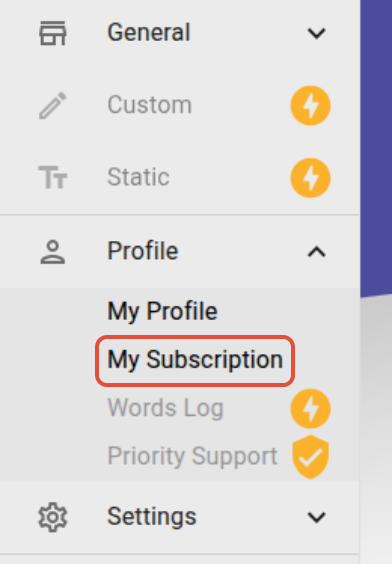 In langify, click on "Profile" in the navigation bar on the left, then on "My Subscription":