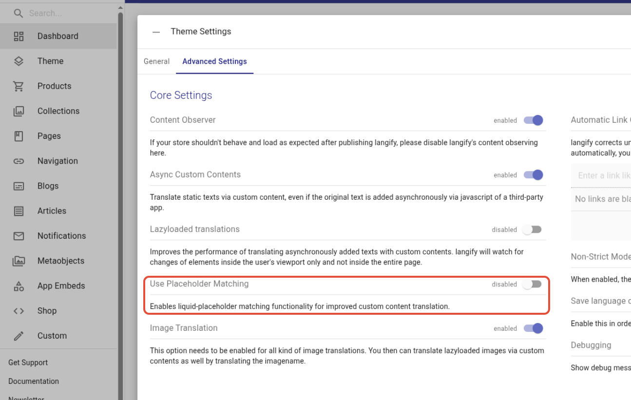 Alternatively, you can enable or disable it at any time by going to langify -> dashboard -> Theme Settings -> Advanced Settings
