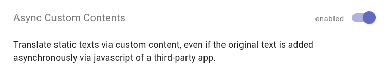 If the Content Observer is disabled, all connected functions — such as Async Custom Content, Use Placeholder Matching, Image Translation, and Automatic Link Correction — are also disabled.