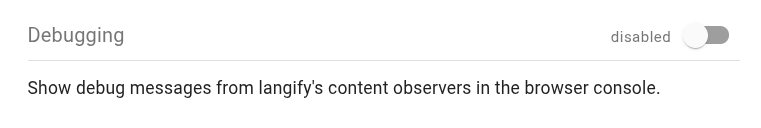 With the Debugging enabled, langify will output information in the browser console about its JavaScript activity.