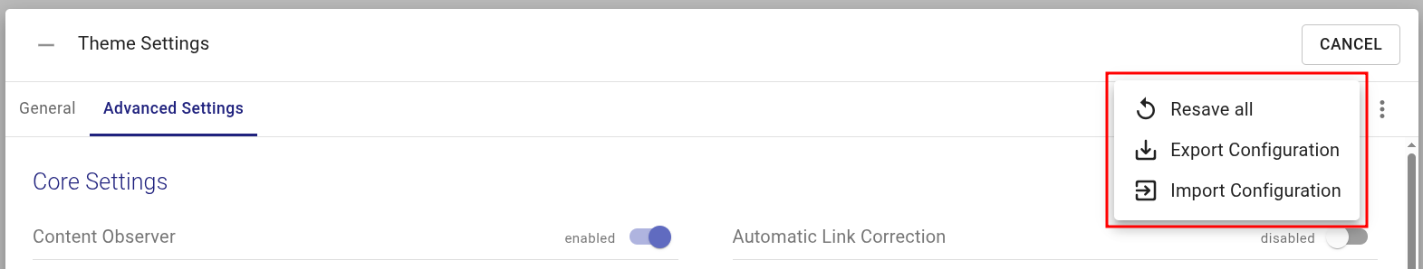 If you click the three-dots icon in the top-right corner, you will find additional options to re-save, export and import the settings.