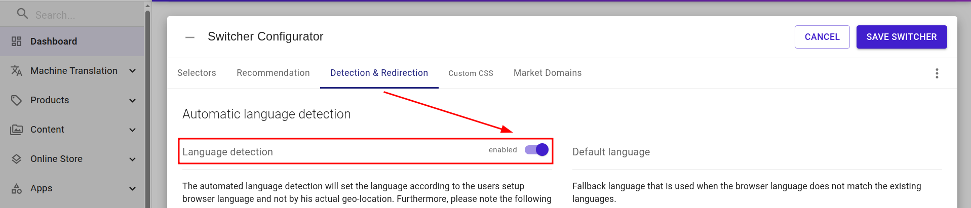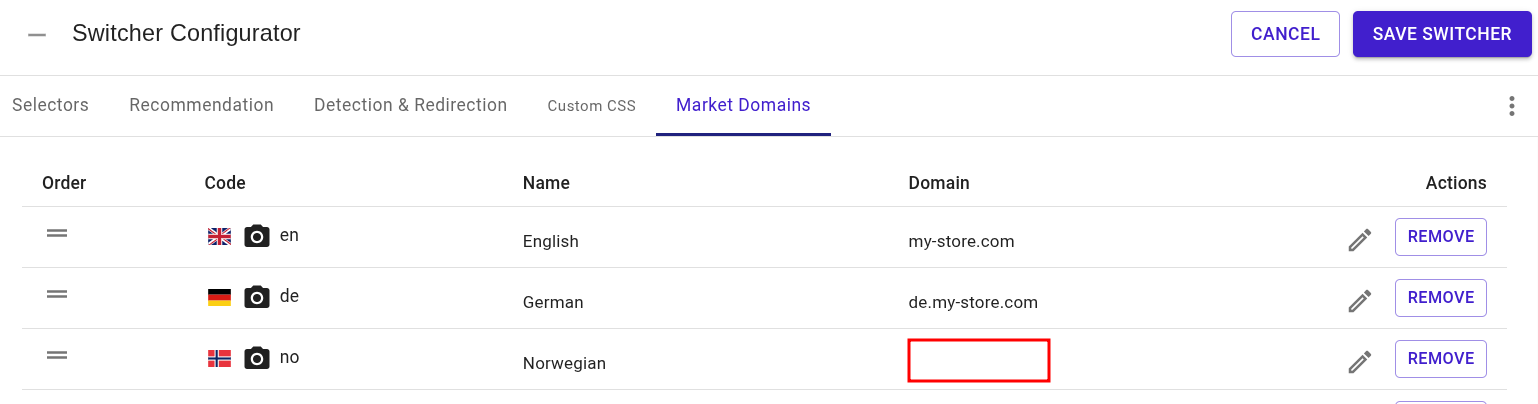 - Go to langify > Dashboard > Switcher Configurator > Market Domains.